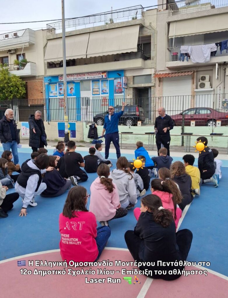 Η Ελληνική Ομοσπονδία Μοντέρνου Πεντάθλου πραγματοποίησε επίσκεψη στο 12ο Δημοτικό Σχολείο Ιλίου, στο πλαίσιο δράσεων γνωριμίας των μαθητών με τα αθλήματα του μοντέρνου πεντάθλου.