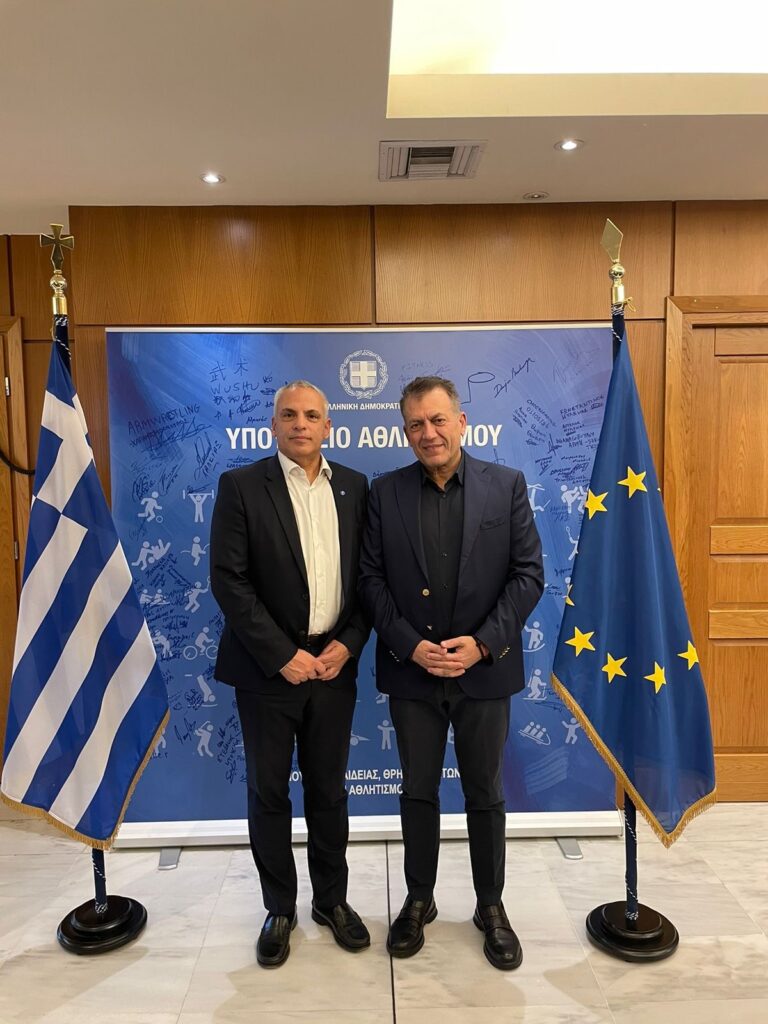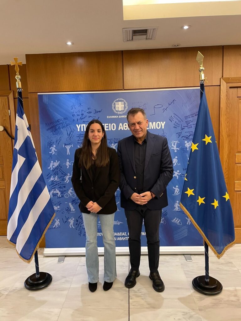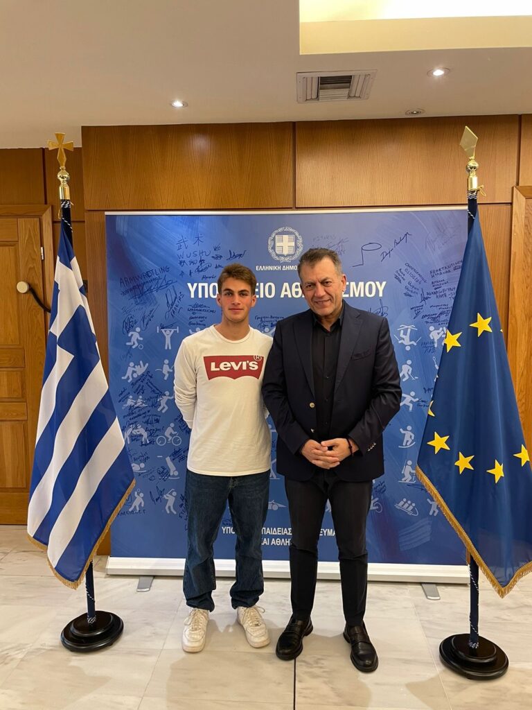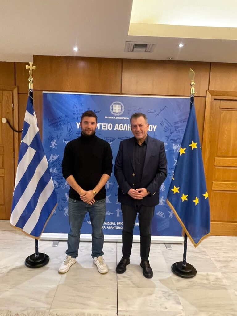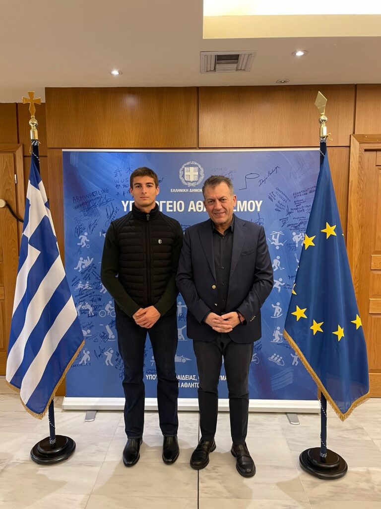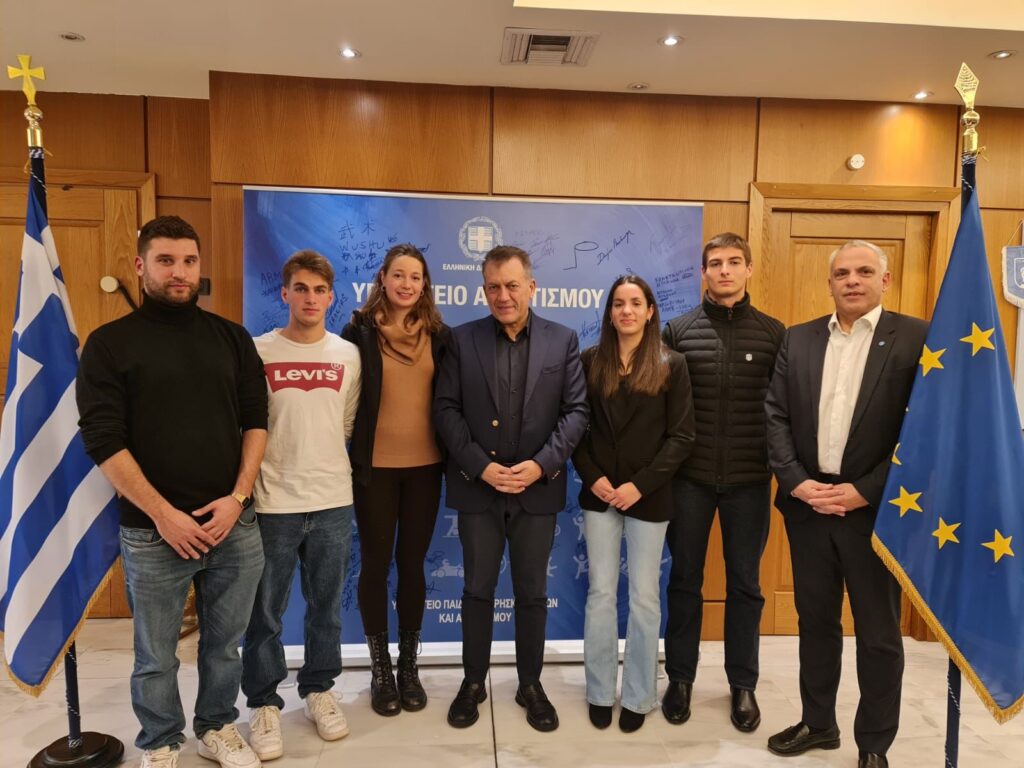 Σήμερα ο πρόεδρος της Ελληνικής Ομοσπονδίας Μοντέρνου Πεντάθλου κ. Νίκος Ιατρού, ο Ομοσπονδιακός Προπονητής κ. Αλέξανδρος Πανταζίδης καθώς και αντιπροσωπεία της Εθνικής μας Ομάδας, αποτελούμενη από τους διεθνείς αθλητές κ.κ. Φίλιππο Σεχίδη, Αριάδνη Νάσκαρη, Δήμητρα Πατσούρα και Νικόλα Παπαδημητρίου επισκέφθηκε στο Υπουργείο Αθλητισμού τον Υπουργό κ. Γιάννη Βρούτση προκειμένου να τον ευχαριστήσει, για την κατανόηση της ανάγκης αγοράς νέου απαραίτητου εξοπλισμού για το Άθλημα του Μοντέρνου Πεντάθλου, που ο ίδιος ο Βαρόνος Pierre de Coubertin ενέταξε στο Ολυμπιακό Πρόγραμμα, το οποίο ιστορικά προέρχεται από την Αρχαία Ελλάδα